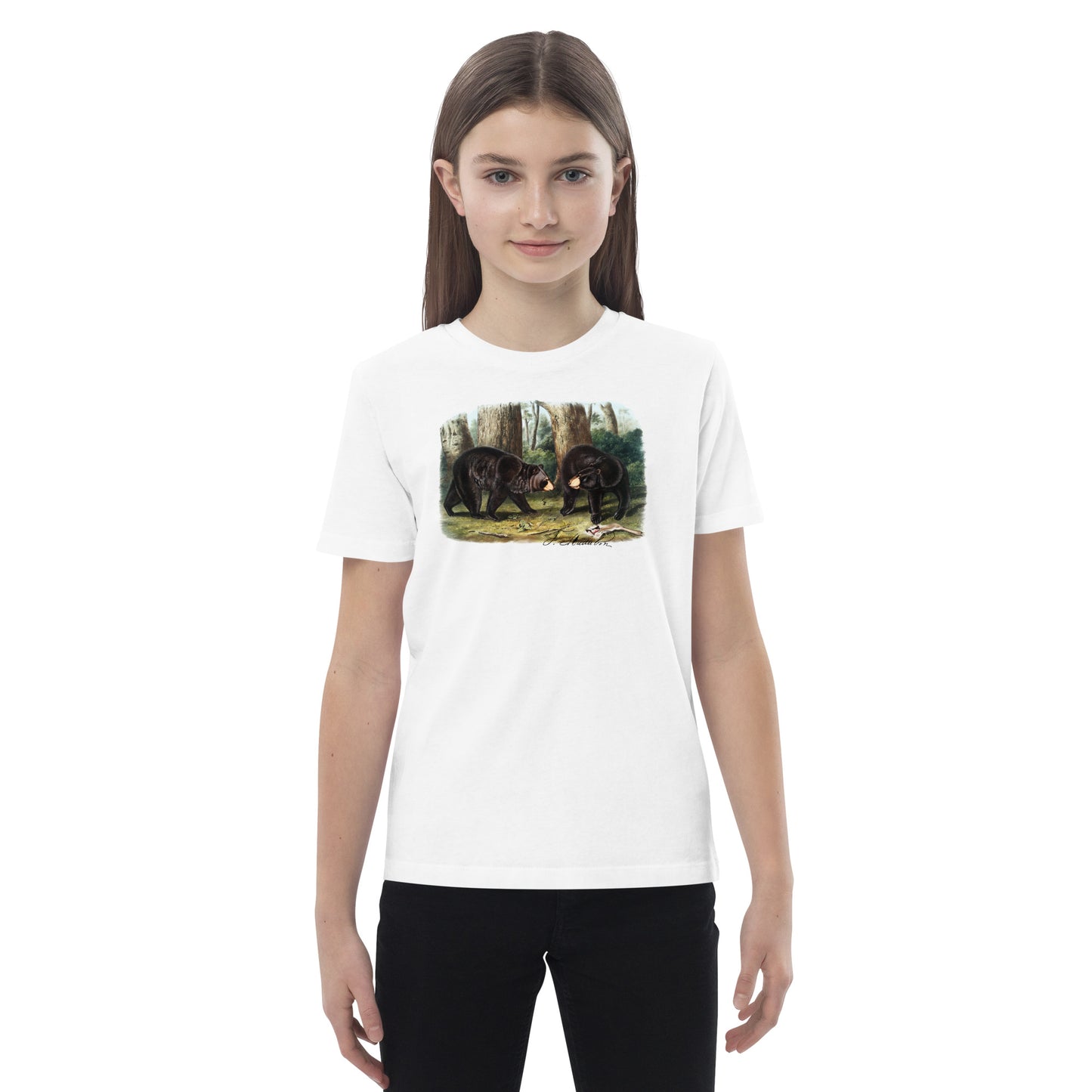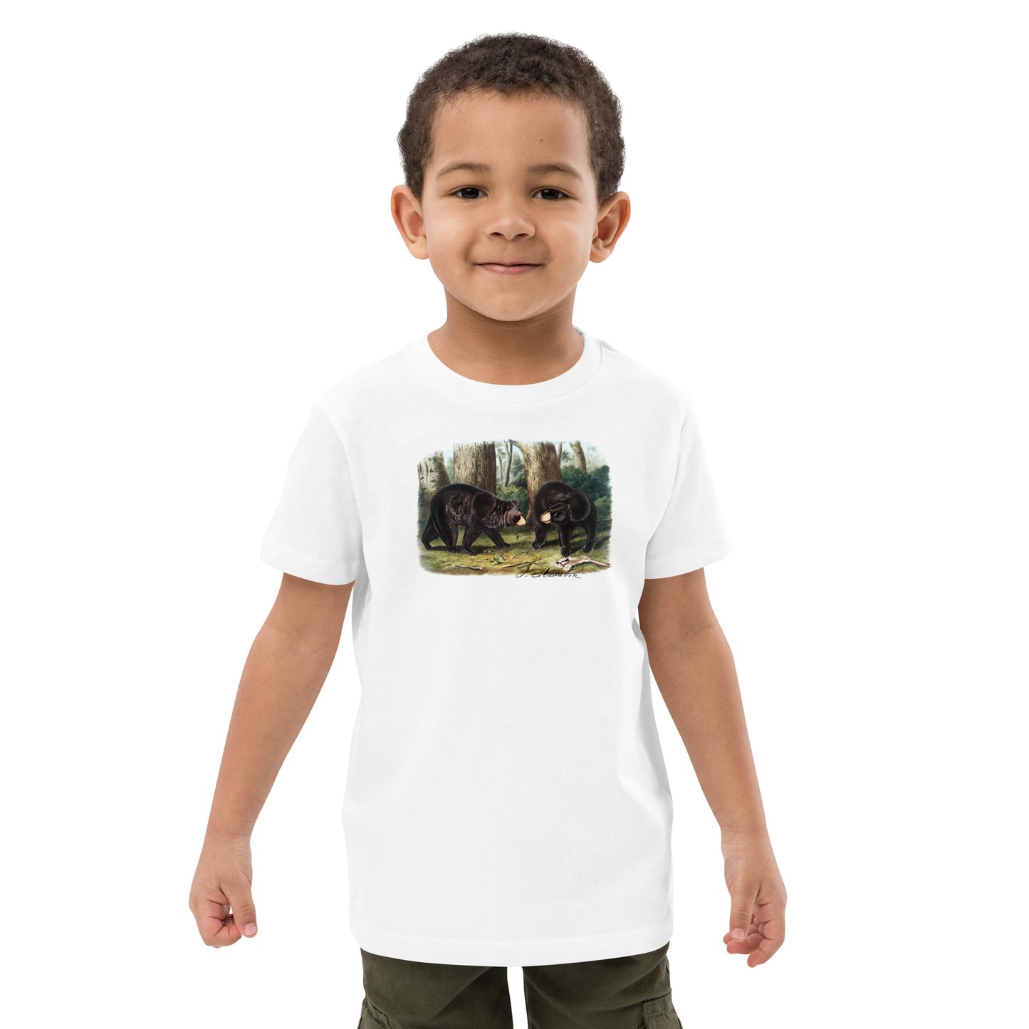 This kids’ organic cotton tee features John Audubon’s striking illustration of a black bear, perfect for little wildlife enthusiasts. The design highlights the bear’s expressive face, with its curious eyes and gentle, yet powerful demeanor. The detailed artwork captures every nuance of the bear’s sleek fur and rounded ears, making it look almost lifelike. Crafted from soft, eco-friendly cotton, this tee ensures all-day comfort while celebrating the natural beauty of Audubon’s work. Ideal for adventures big and small, this shirt brings a touch of the wild into your child’s everyday wardrobe, inspiring a love for nature and exploration.