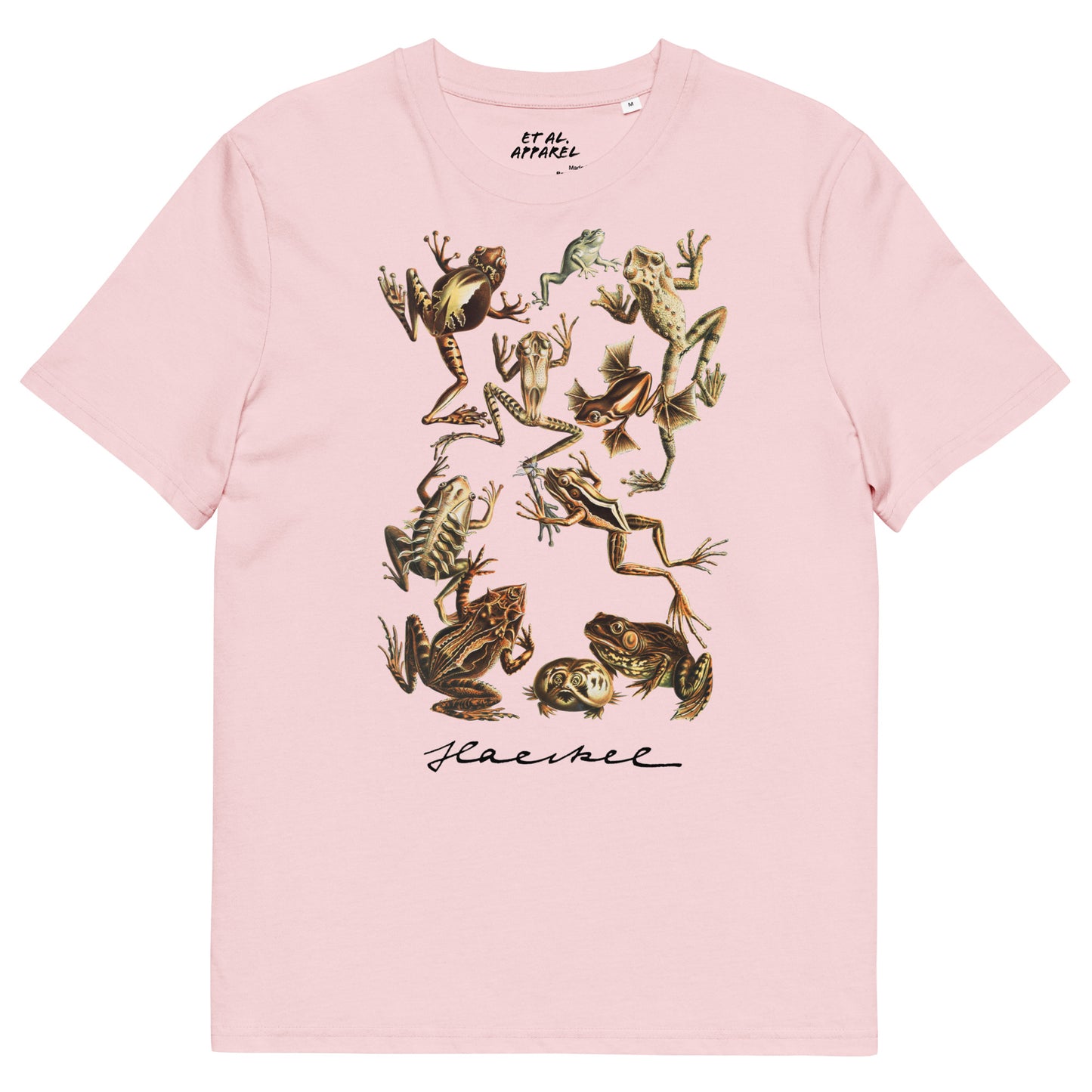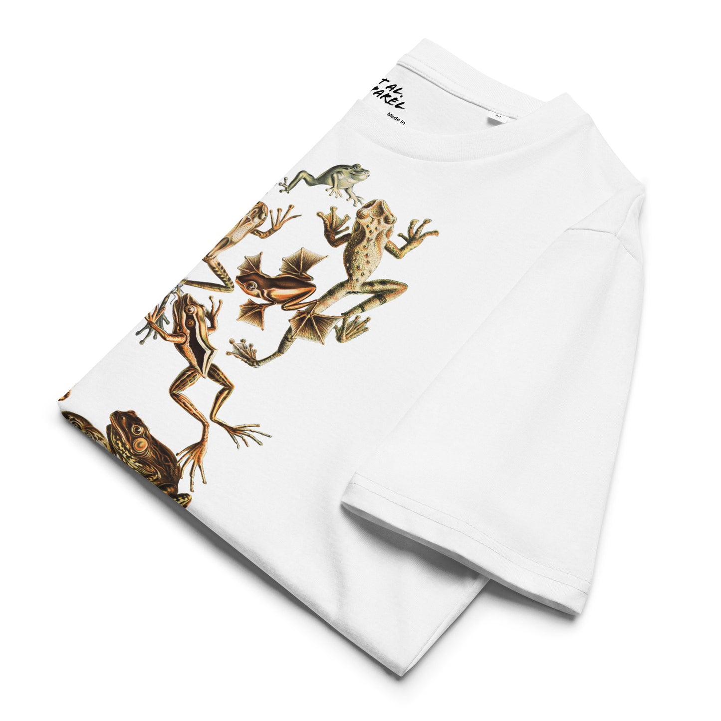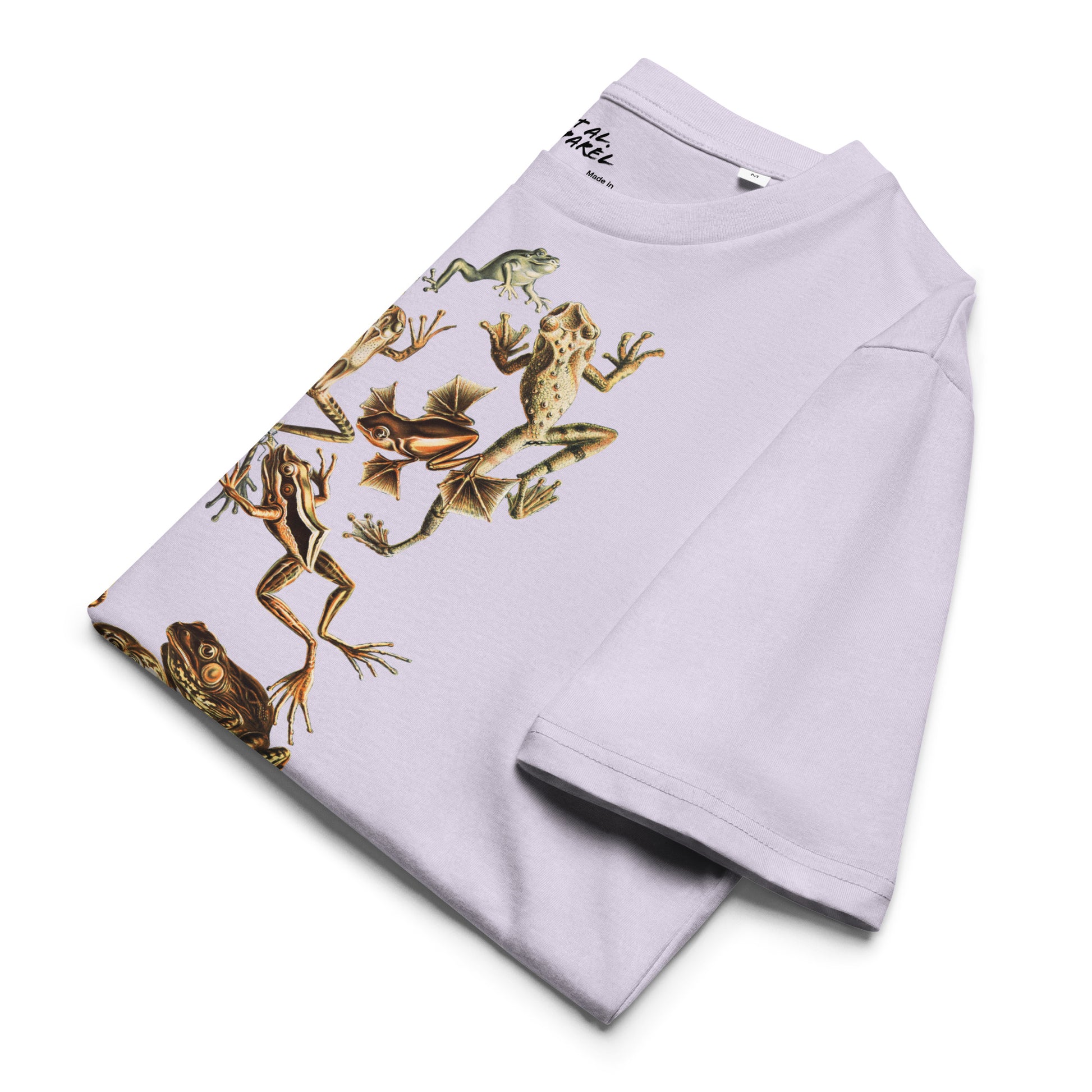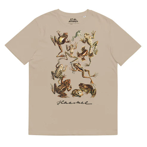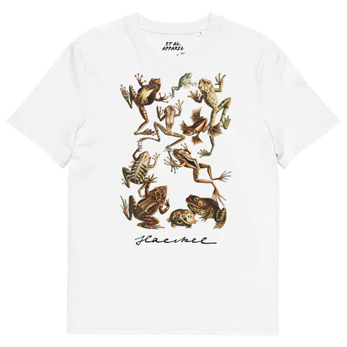 Our Organic Cotton T-Shirt features an extraordinary illustration of Batrachia by the acclaimed 19th-century biologist and artist Ernst Haeckel. Known for his ability to capture the intricate beauty of the natural world, Haeckel's Batrachia illustration is a masterpiece that showcases the diversity and elegance of amphibian life.