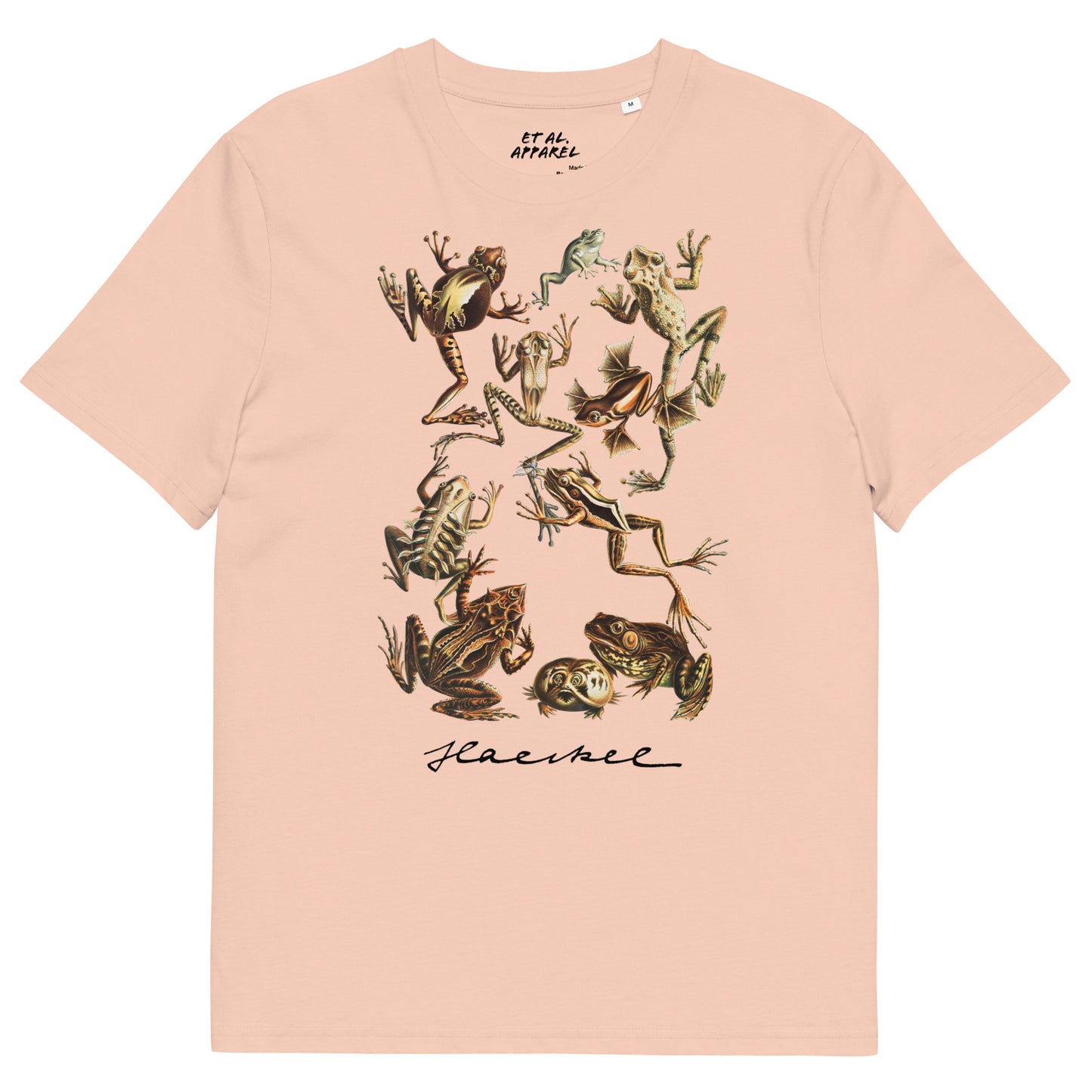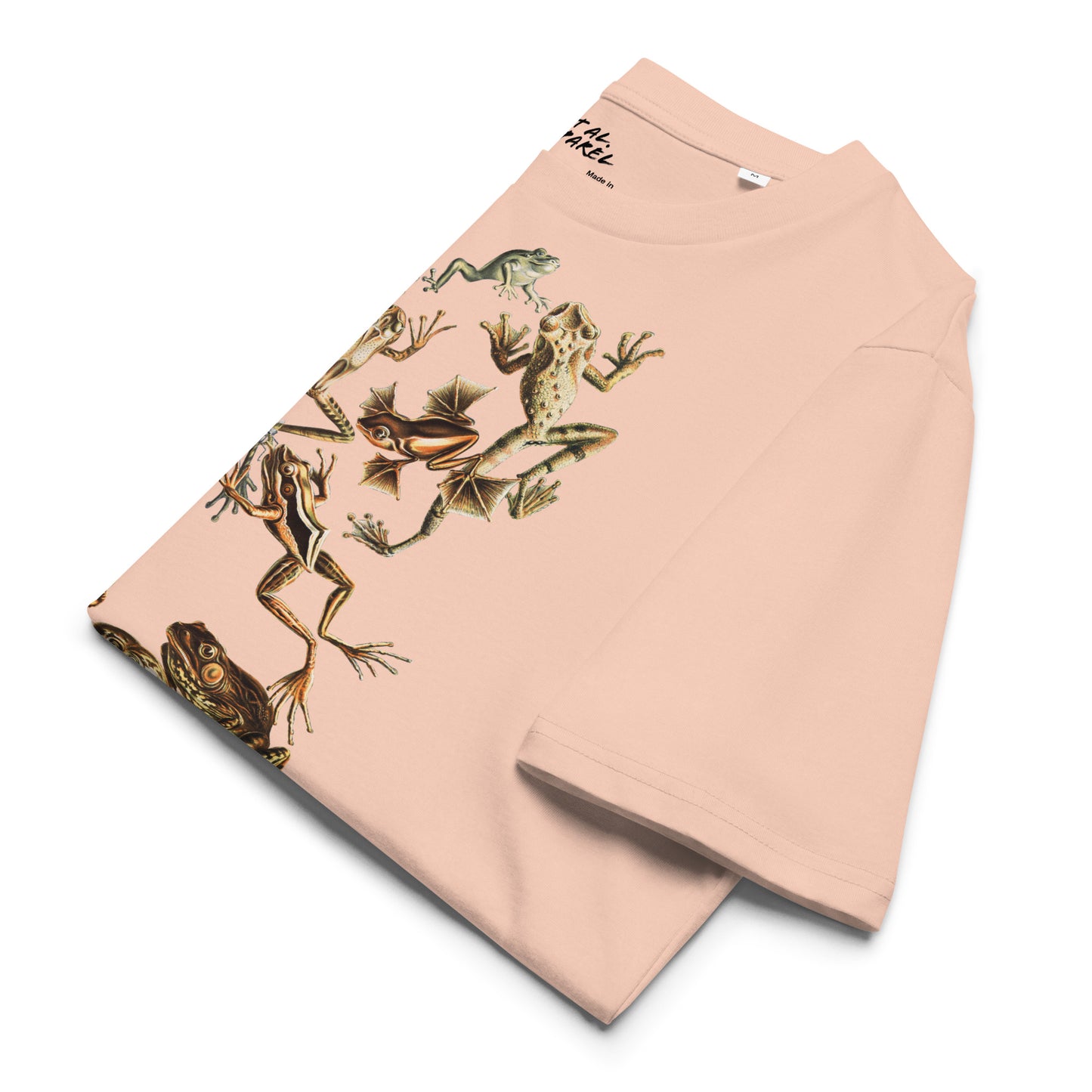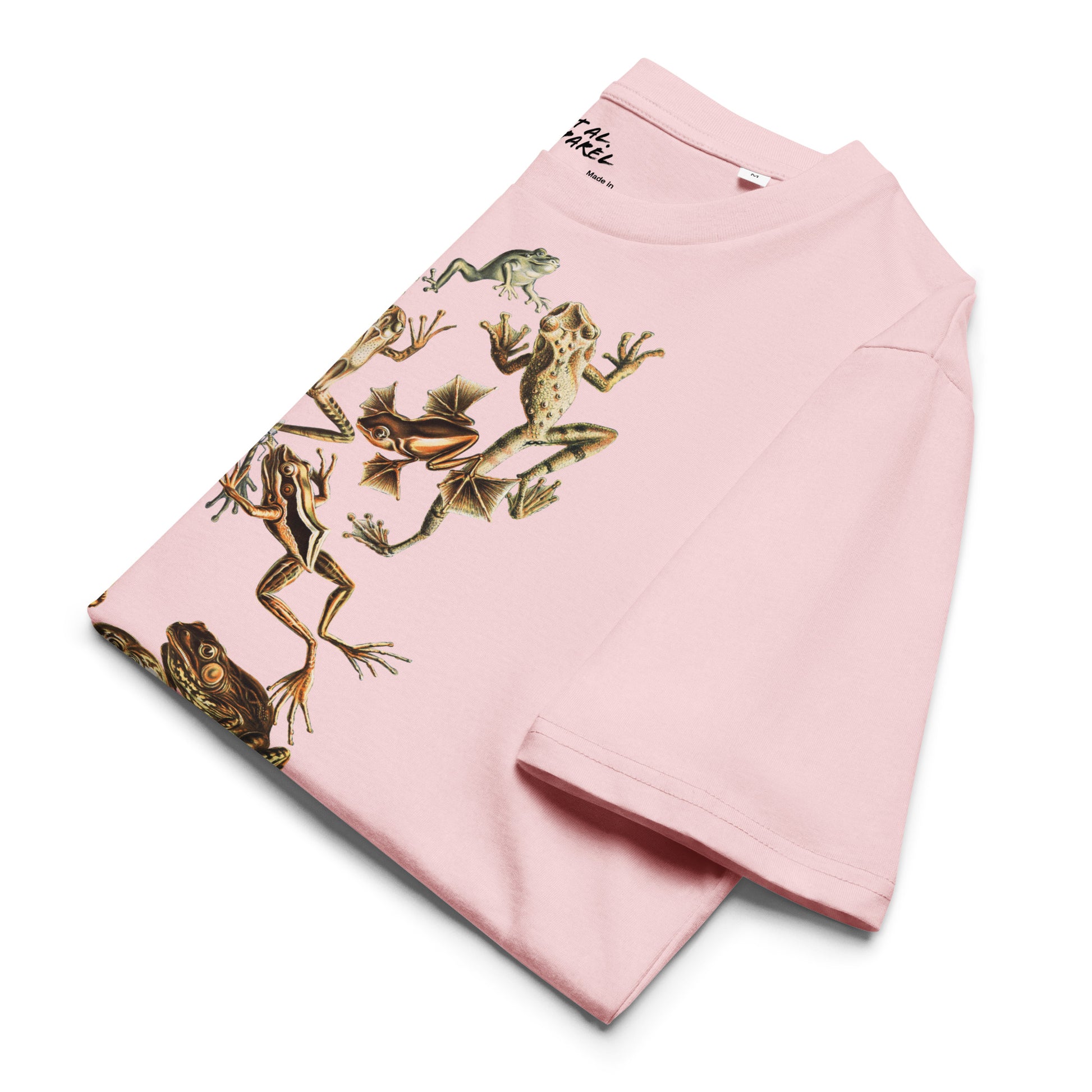 Our Organic Cotton T-Shirt features an extraordinary illustration of Batrachia by the acclaimed 19th-century biologist and artist Ernst Haeckel. Known for his ability to capture the intricate beauty of the natural world, Haeckel's Batrachia illustration is a masterpiece that showcases the diversity and elegance of amphibian life.