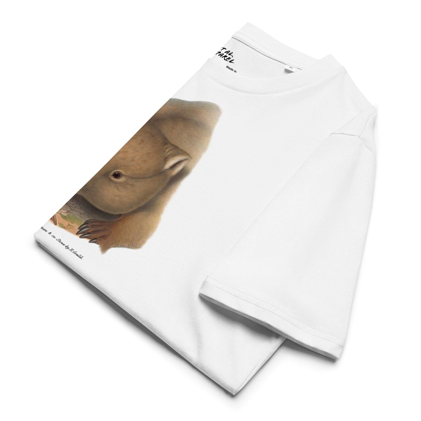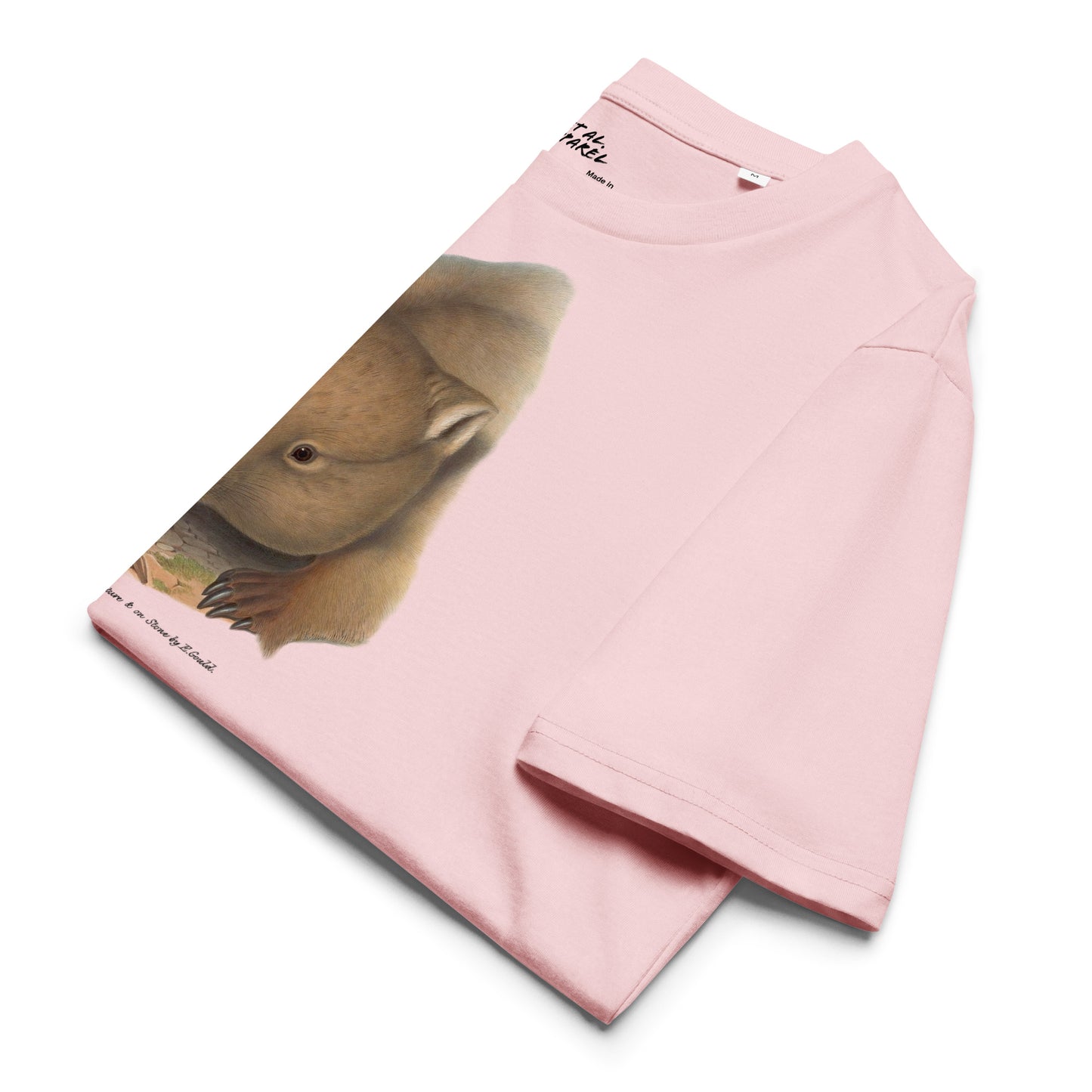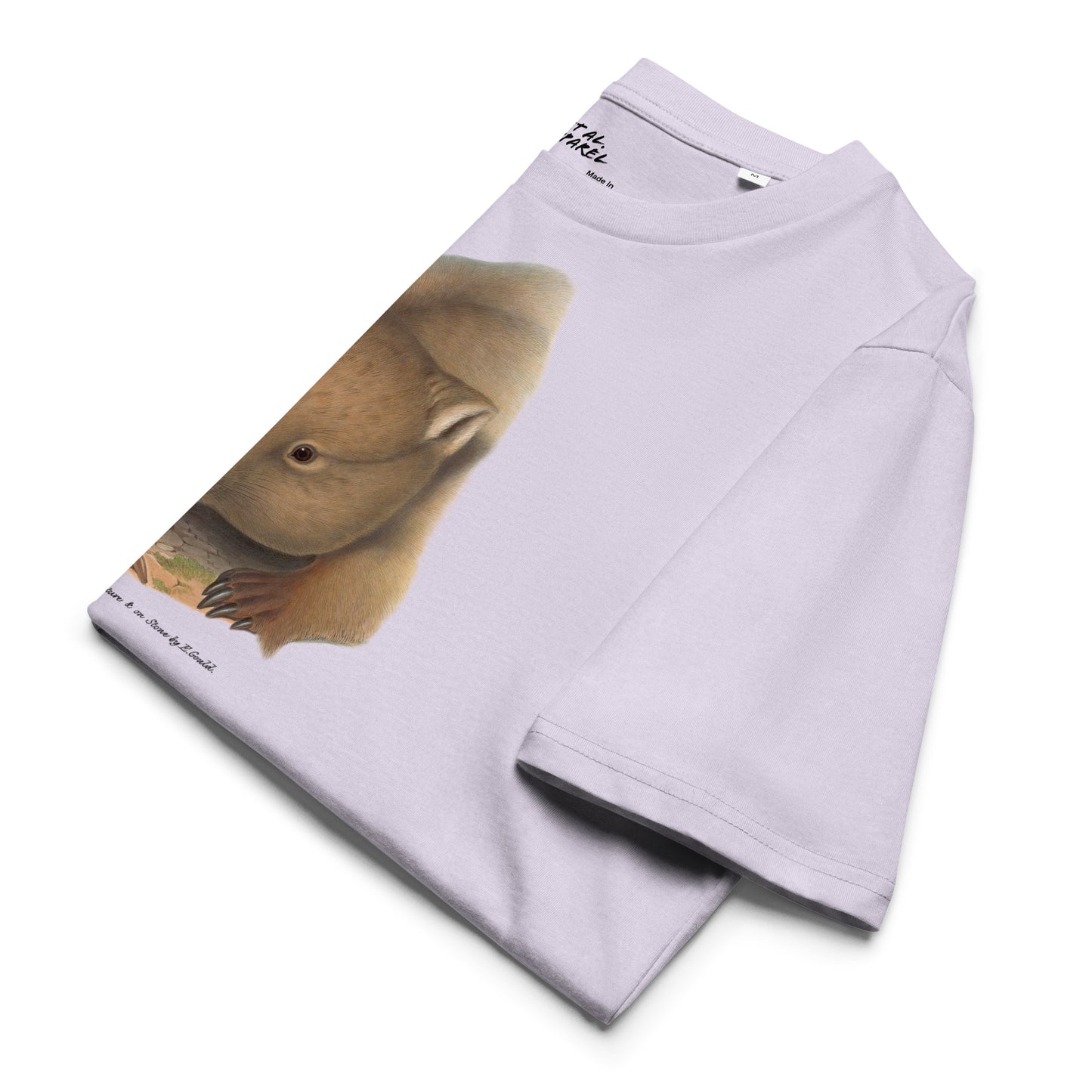 Crafted from 100% organic cotton, this t-shirt offers both comfort and sustainability. The soft, breathable fabric is ideal for everyday wear, while its eco-friendly production reflects a dedication to preserving the natural environments that these wombats rely on. Wearing this t-shirt is a way to celebrate Elizabeth Gould’s artistic legacy and to honor the Southern Hairy-nosed Wombat—a creature that embodies the resilience and charm of Australia’s wildlife, captured beautifully in this focused, intimate illustration.