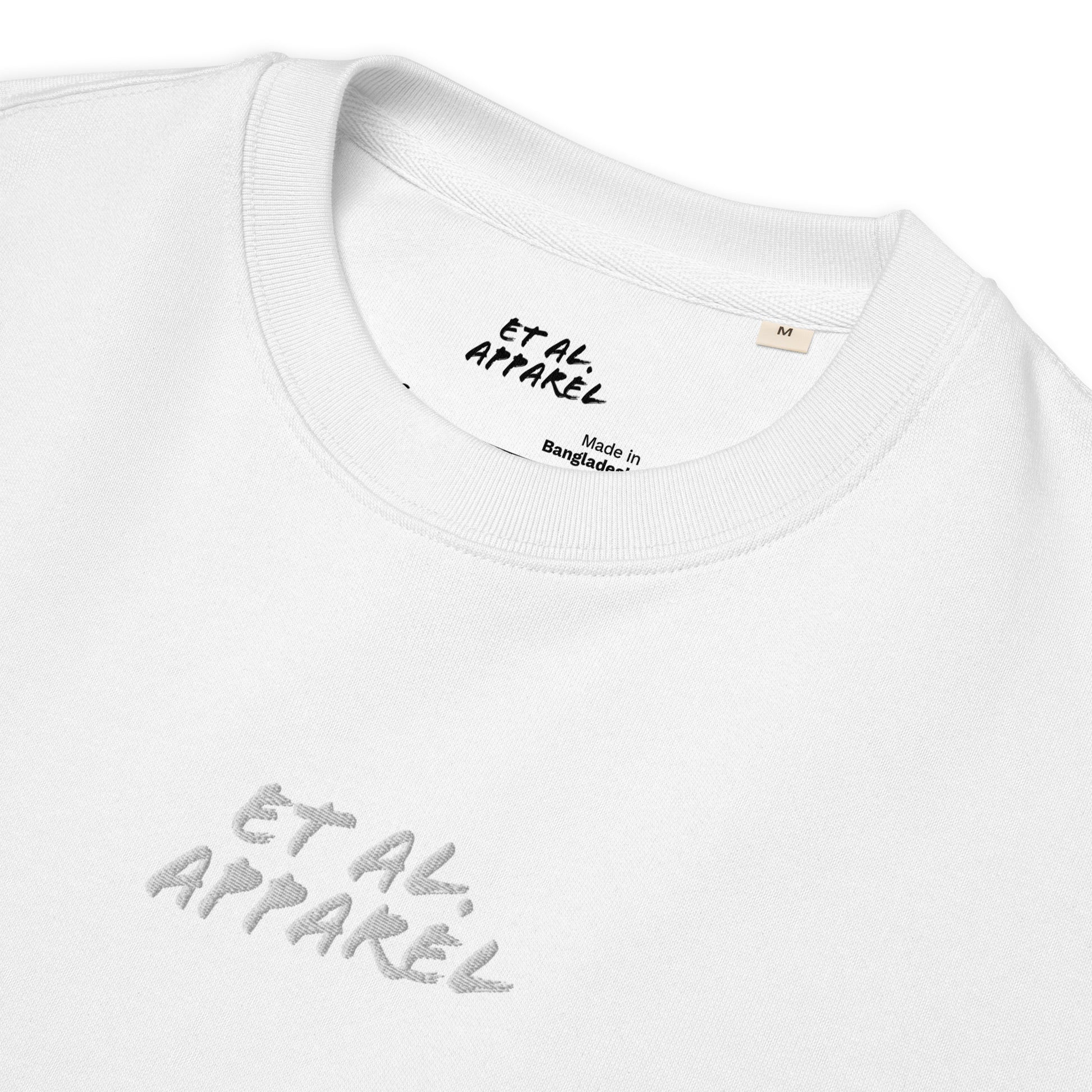 Refresh your wardrobe with the crisp simplicity of our White Organic Cotton Sweater. Crafted from 100% premium organic cotton, this sweater offers unparalleled comfort while supporting sustainable fashion. Its clean white color and minimalist design create a versatile and timeless piece, highlighted by the subtle white embroidered Et Al. Apparel insignia at the center chest.